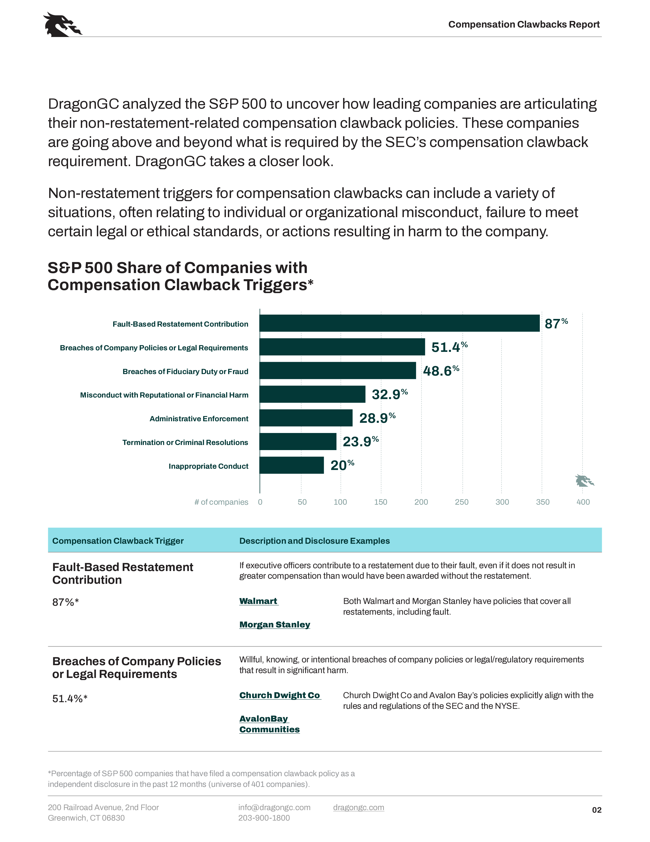 A comprehensive analysis of S&P 500 companies that have filed a compensation clawback policy as in independent disclosure in the past 12 months, encompassing 401 companies